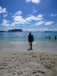 Arrived in Philipsburg before our room at the Holland House Hotel was ready so we had time to kill (like that hasn’t been what we’ve been doing for the past week). We strolled the Boardwalk to the end of town and back. Beautiful beach! We had been here once on a cruise two years ago and I remember how gorgeous this beach is. Wide with that signature turquoise water. There were three cruise ships in port so the streets were quite busy as several thousand bargain seekers pushed and shouted in and out of the jewelry shops lining Front Street. Such a contrast from Nevis.