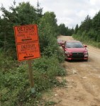 Traveling on past Crawford Lake and turning south onto Little Salmon River Rd., we came to major construction where the extension work of the Fundy Parkway construed my mental map for the gorge parking spot. Lost momentarily, we backtracked to the only signage we had seen for the gorge which meant a 5 km hike was ahead of us. Very good then, off we went. Within 5 minutes, we were soaked to the skin in this 35 degree weather.
