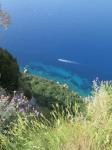 We caught the early train from Rome to Naples (crazy traffic in Naples…the taxi ride to the ferry was very scary), and then the ferry to Capri. We arrived before noon and hopped the bus to Anacapri on the other side of the island. The first impressions of the island views were absolutely stunning. Photos cannot give you the depth and perspective of distance. It’s gorgeous here… no wonder ancient Roman emperors came here to build summer palaces. Despite the blazing sun, the ocean breeze brought the temperature down to perfect.