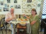 The last supper on Capri was at a restaurant recommend to us by a fellow guest from New York who is of Italian descent and familiar with the town. Laguna del Gusto…here’s the selections; prossecco appertif (on the house), primis of deep fried zucchini flowers and spagetti Primavera, secundis of mixed seafood (squid, octopus, sardines, tuna, scampi, cod) and grilled swordfish, and limoncello finisher (on the house). The owner, Fernando, is most gracious. We ended the day with a stunning sunset on the Mediterranean. Totally lovely.
