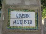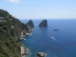 Entering the town, we met the cruise ship tourists… narrow streets, many tourists, claustrophobia. Nevertheless, we pushed through to the southside of the town to visit the Gardens of Augustus (2000 years old). So lovely, especially for the view of the Faraglioni Rocks, giant sea stacks jutting up out of the sea… one in particular with a huge arch under it through which even large tour boats can pass.