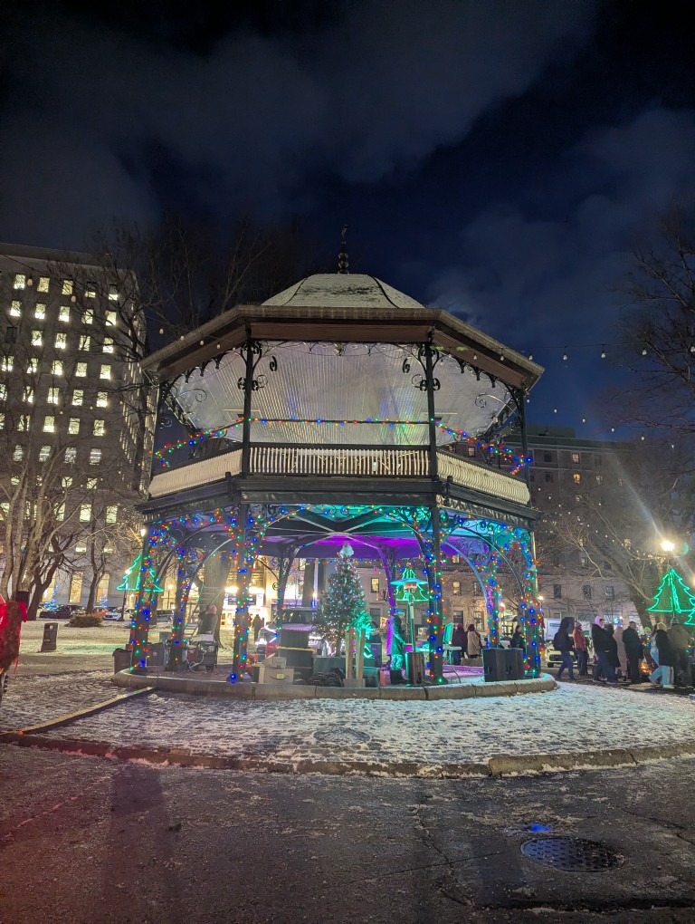Monica and I enjoyed a ‘Date Night’ during the SJ Uptown Sparkles event. It started with a deliciously umami meal at Sense of Tokyo and continued with a stroll through King’s Square, the City Market and along the streets. A good crowd had assembled on this very cold and windy night. We enjoyed the music and lights as we stepped into a few shops to do some shopping and sample the wine and cookies.