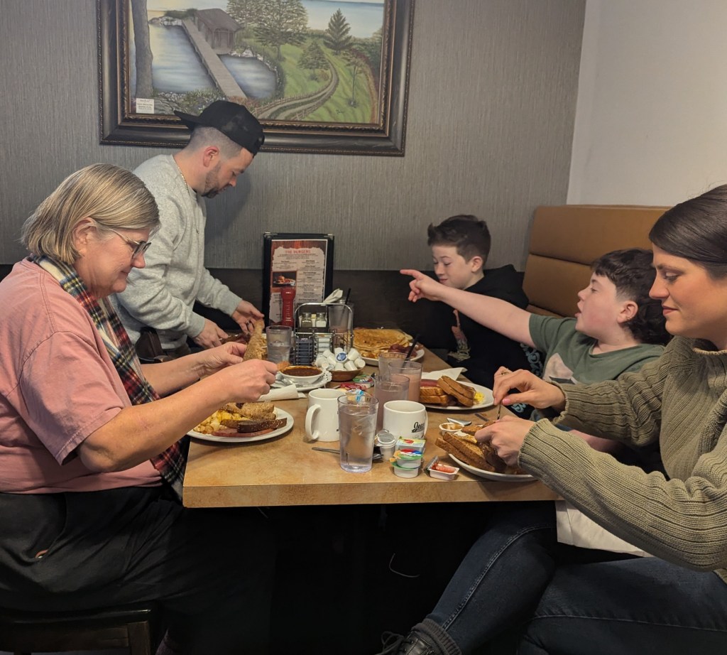 Leaving Moncton next morning, we all enjoyed one final breakfast meal together at Jean’s Restaurant on Mountain Road. I have wonderful memories of bringing my parents to this restaurant years ago. How fortunate we are to be full of good food, family love and these memories captured in photos.