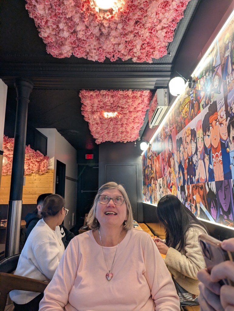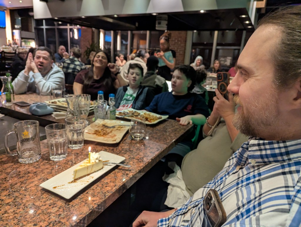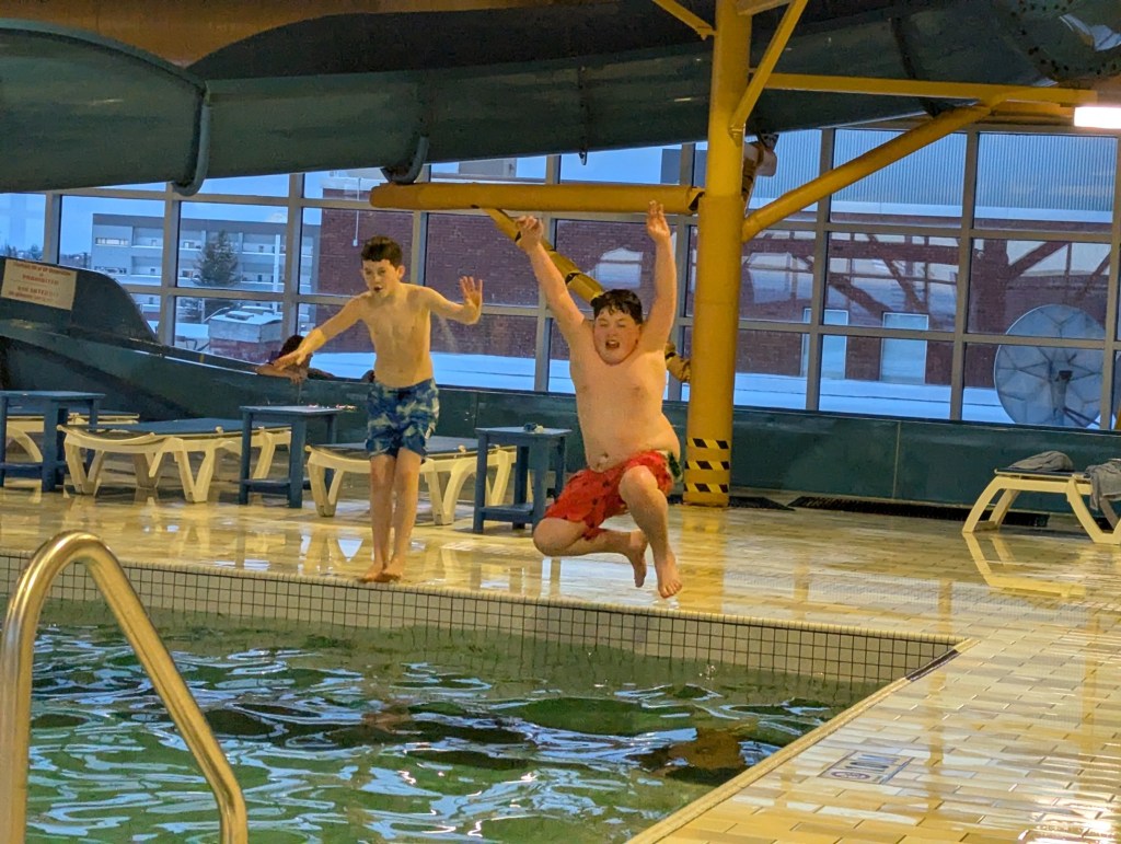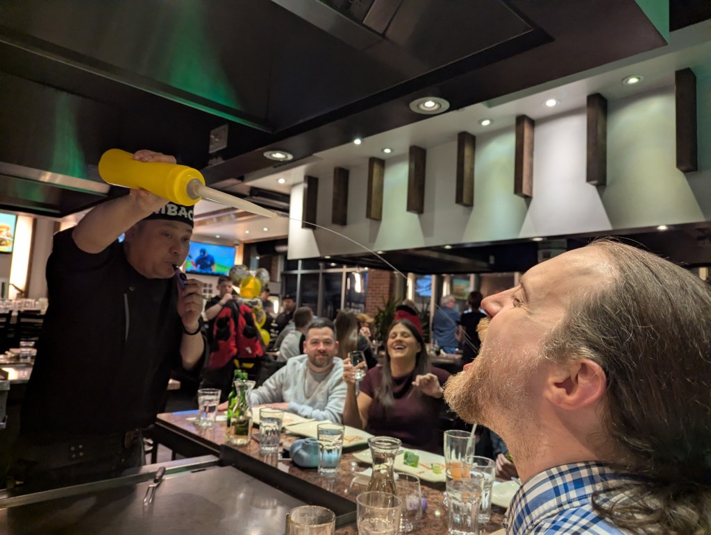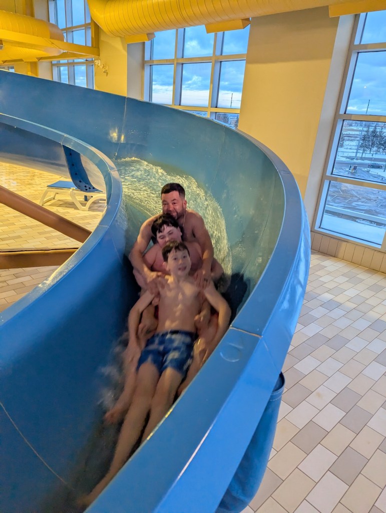 It was a wonderful weekend of family frolic and great food to celebrate Valentine’s Day, Ryan’s 40th birthday and Family Day all at the same time. First up, Ryan, Monica and I enjoyed a delicious ramen meal at Umami Kid restaurant in Saint John. Then we joined with Sarah’s family for a one-night get away to the Delta Beausejour Hotel in Moncton. The heated pool and water slide were so was much fun but the highlight was the dining experience at Osaka Hibachi restaurant (right across the street from the hotel). The chef was brilliantly entertaining and the food amazing.