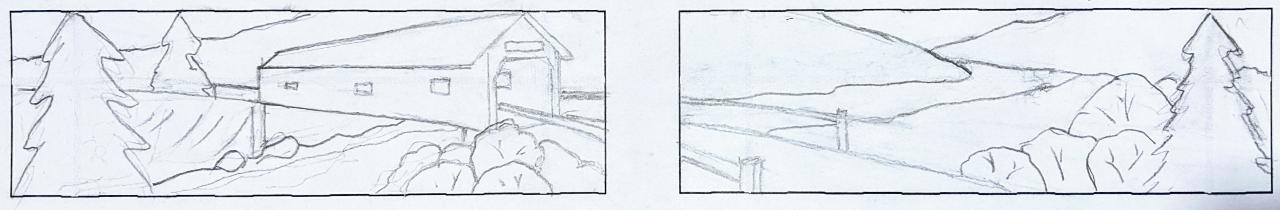 A bit of history leading to the design: Cindy’s childhood home was on the banks of the Canaan River right beside the Canaan Bridge, about 5 miles from Havelock where I grew up. In those days, the wooden bridge was covered and spanned a favorite swimming hole for us children from miles around. I remember the bridge fondly and have even painted it in watercolors in my younger days. When I presented a covered bridge sketch for Cindy to consider, she accepted the concept right away. I was delighted!