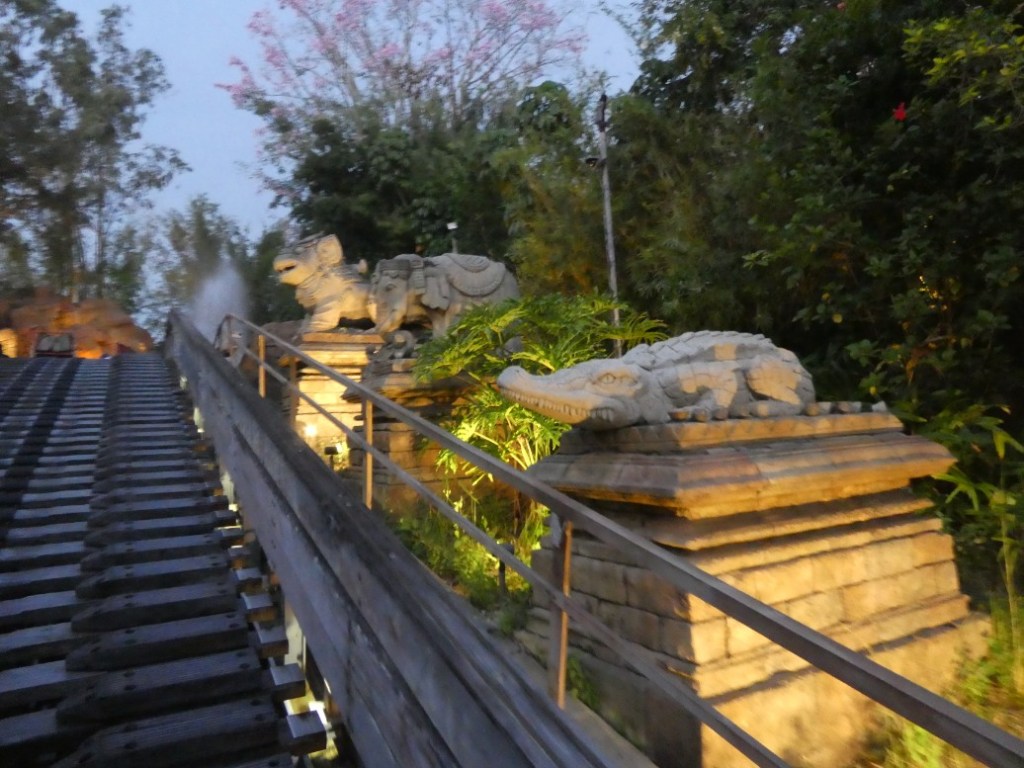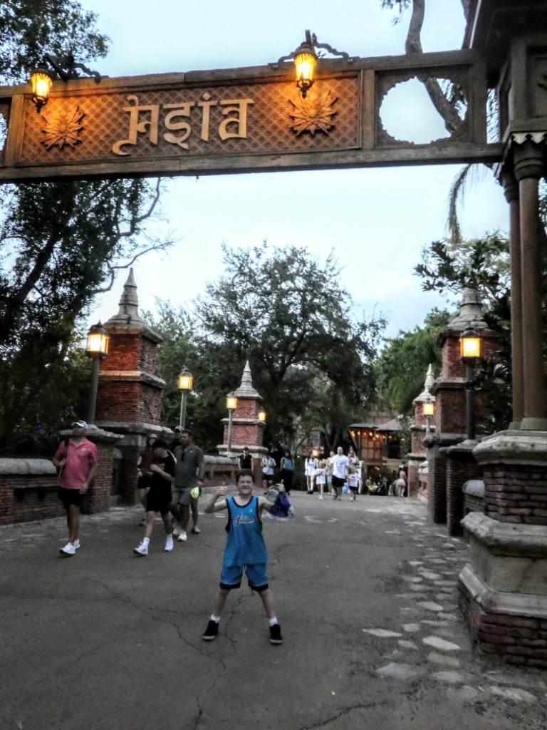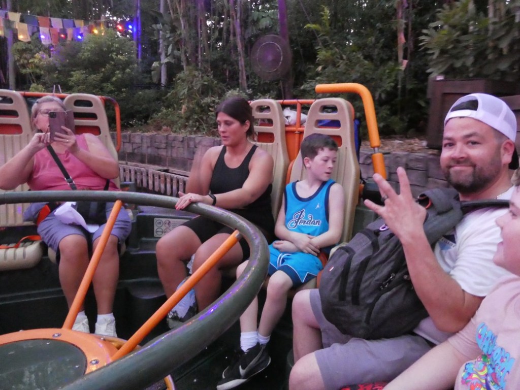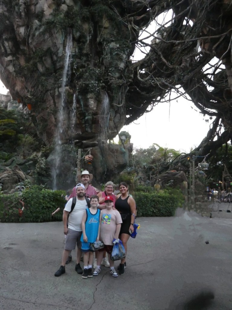 We did this park in a half day. It is a beautiful cool and shady park. We arrived in mid afternoon and stayed into the evening to see the light show on the Tree of Life. Sarah and her family did some of the thrill coasters while Mon, Ryan and I did the Avatar Flight of Passage ride (I was in my glory). Then all seven of us did the Navi River Ride which was my favorite ride of this entire Florida trip. When the lights come on at night, this park is other worldly.