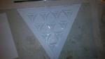 Pattern creation took only 30 minutes and was simple and easy since everything was straight lines. The pattern really drew itself…all I had to do was measure to get the angles right. 15 7/8″ outside dimension, 3/4″ border and all inner triangles @ 2 7/8″.