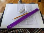 This was the third commission from friend and faithful patron, Kevin Carpenter. It called for something elegant to grace the upper portions of three tall windows in his living room. His familiar design request was to incorporate the colors green and purple and the initials K & K (for Kevin and Karla). I felt a little nostalgia setting in with this commission, and alot of excitement over the challenge.