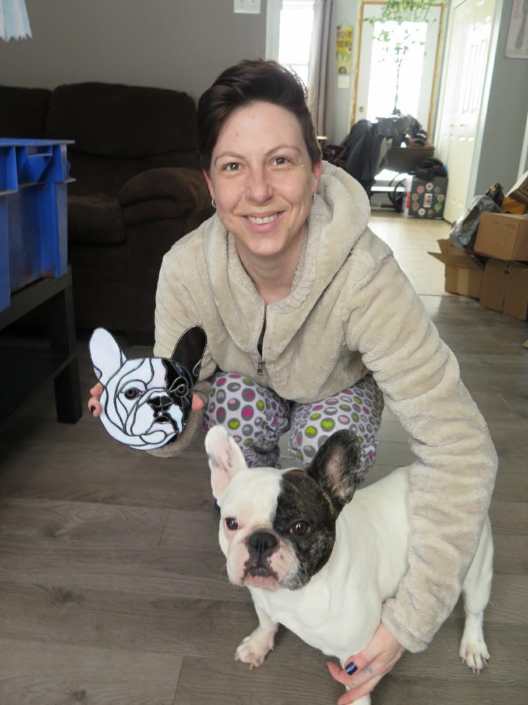 I was fortunate to meet the cute little bulldog in person when I dropped off the finished piece at Lori’s home. Bizzy is a barrel of business in every wonderful way. I am very thankful Lori brought this new challenge to me at Nellyglasss Studio. I enjoyed the artistic adventure immensely! 😀