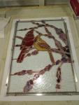 Overall, this project was a delightful challenge technically in precise grinding and fitting. The artistic challenge was in guessing at shrub morphology because we do not Redbud trees in Saint John. I still have the original panel with plans to refurbish it in the future. I’m OK with that because Monica and I do love to see the Cardinals.