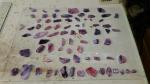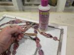 So, with that as the subject, I set out creating a pattern with a pair of cardinals (male and female) sitting together on a branch of the Redbud tree. I found a cardinal pattern that I liked for sale online and Monica ordered it for me. I had it within a week. Next I drew the tree branches around the birds and sized the picture to 14″ x 18″ including a 1.5″ border. For the glass selections; red streaky Spectrum for the male, light amber and orange streaky Spectrum for the female, and a beautiful pink/ purple Urobos for the flowers. The background was made from a clear leaf-textured glass to give a perception of depth to the composition. The border was made from 1.5″x 4″ clear bevels.