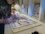 Once the panel was completed and packaged in Styrofoam and cardboard, Monica and I sent it off to Ontario via Purolator completely happy that it was finished on time for Sandra’s birthday. It arrived 2 days later as promised but with two small cracks in the background glass. Poor Tom! His birthday surprise for Sandra was now somewhat of a disappointment. Nevertheless, during our discussion on how to go about repairing the damage, he said the most appreciated thing to me… “Every great work of art has a story… now we have a story”. That really lifted my spirits.