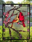 No sooner were we home from our trip when I received an email from our friend, Tom Burian of Mississauga, husband of Monica’s niece, Sandra Jackson (Marguerite’s daughter). Tom was seeking a birthday gift for Sandra and thought something in stained glass might be nice. When asked, Tom already had subject matter in mind… cardinals! Ironically, they have an American Redbud tree on their property and enjoy seeing the cardinals in it each spring when it blooms.
