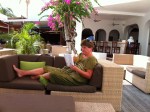 By noon, we were on the beach and enjoyed a quieter day as there were no cruise ships in that morning. One did arrive in the afternoon but by then we had retreated to the coolness of our room for a cocktail and some blogging.
