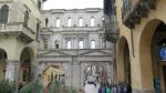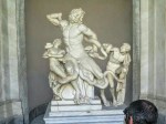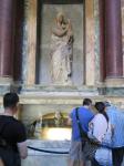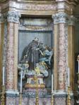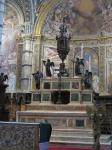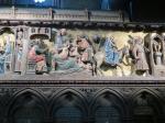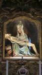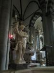 Moving on through the Gothic Quarter, we came next to the Bacilica of Barcelona also known as the Cathedral of the Holy Cross and Saint Eulalia and is the seat of the archbishop of Barcelona. Saint Eulalia was a 3rd century virgin who was martyred by the Romans for refusing to recant her Christian beliefs, by being stuffed into a barrel, stuck with knives and rolled down the street. As for adornment both inside and out, the cathedral is at the opposite end of the scale from the previous one. Begun in the 11th century, it took 200 years to complete and therefore displays both got gothic and neo-gothic styles. The entire perimeter of the church inside is sectioned into individual chapels, each dedicated to a specific saint. The statuary is incredibly beautiful…the artists really capturing well the emotions of the biblical stories.