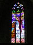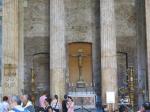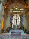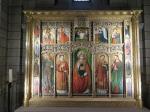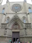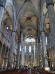 The first one we came to was Santa Maria del Pi situated just one block off La Rambla in the Gothic Quarter. The name means Saint Mary of the Pine and there has been a pine tree growing in the small courtyard since the 1200’s. The church itself is of Catalunya Gothic design and is, by comparison to other Catholic churches, quite simple and unadorned both inside and out. However, its most notable feature is the remarkable rose window over the main entrance. At 10 meters in diameter, it is one of the largest rose windows in the world and is absolutely breathtaking. Photos cannot capture it’s beauty. To get the whole thing in the shot, you have to zoom out and then you lose the wonderful details. I was very happy to see this.