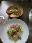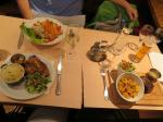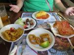 It was already 11:30 and we were famished and we had 12:15 reservations for the fourth church of the day, La Sagrada Familia, so we had to hustle. Lunch was some quick food at the Picasso Bar right across the street from La Sagrada so we could make the quick dash when we finished.
