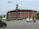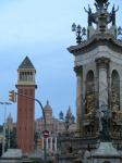 Then lunch at the #1 burger joint in Barcelona, Bacoa. Excellent burgers! I had the lamb…Mon had chicken. And off we went towards home stopping at Placa Españya for some daytime shots. This is where we went our first night to see the Magic Fountain show. From the upper deck of the Torre Arena, you get a great view in one direction of Placa Espanya, Mont Juic and the 1992 Olympic site and in the opposite direction, Barcelona to the west all the way to the Temple of the Sacred Heart of Jesus high up on the distant hills to the west.