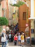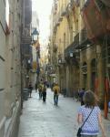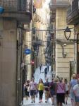 We started by catching the subway to mid-point La Rambla and struck out to explore the streets of Old Barcelona. The buildings are all tall (5 stories at least) and connected end to end with no space between except for streets. The cobblestone streets are very narrow, barely wide enough for a small delivery van, and some only wide enough for pedestrians (4 ft) making this part of the city quite shady (a good thing… temp already 25 at 9am). Most of the buildings date back to medieval times with some as old as the Roman Empire. However, as a result of the closeness of the buildings, you cannot step back anywhere to get a photo unless you are in a small plaza. Such was the case with some of the churches we visited…difficult to get an outside shot.
