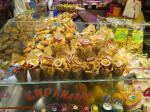 Next morning (last day in Barcelona) we decided to revisit the Gothic Quarter of Old Barcelona. The first thing we came to exiting the subway terminal on La Rambla was the fabulous and vibrant St. Joseph Market, commonly called La Boqueria. It is a public market with estimated 200 booths inside selling every food item imaginable… from soup to nuts (see the photos). Impressions include; colorful, aromatic, happy people, fresh everything, bizarre food, wonderful.
