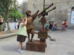 We went right out to spend the afternoon exploring the famous La Rambla street with its shady pedestrian center promenade. Barcelona is a huge city but the subway got us there in just 10 minutes… very easy to get around. We started the top of the street at the picturesque Catalunya Plaza with its lovely fountains and statuary and walked down the street all the way to the shores of the Mediterranean (about 1 kilometer). Lined with souvenir shops, restaurants, hotels, markets, theaters and thousands of people enjoying this beautiful Thursday afternoon, La Rambla is a wonderful place to stroll, people watch and enjoy some tapas and sangria.