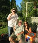 You bet it was! That has to go down to one of the funnest deck parties we’ve ever had. The weather was perfect. Ryan came home from Fredericton! Sarah and Matt and Deacon (150 lb Rottweiler) came to our house and we all kicked in for a family-only celebration on the back deck. Ryan and I waited for others to arrive under bright cloudless skies and warm sunshine excellent for spiritual healing. Arrival of Sarah and Matt signaled the official start. With the bar now open, cocktails included El Dorado Spiced rum on ice … saved from St. Martin last February. Ryan and I partook, most happily. Also gluten free munchies for me (veggie sticks) and try-to-avoid-fail munchies (ripple chips) for the kids. Sneaking snacks to Deacon was a game of trying not to get your entire hand swallowed along with the chip 🙂 What a wonderful dog. Magnificent.