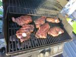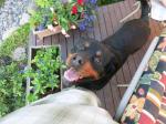 Monica had master-menued a beautiful meal with grilled striploin steak, fried mushrooms and onions, baked potato, boiled corn with cilantro butter, herb butter shrimp and lots of rolls. Ever have a 150-lb Rottweiler stare at you while you’re eating your steak? knowing that if he really wanted it, there would be nothing you could do to stop him…so I bribed his loyalty with bits of everything as much as I could get away with. (is that sort of like spoiling the grandchild?)