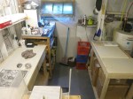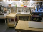 I’ve wanted to expand nellyglass studio for awhile now so I would have more surface area to work on and so I could set up my grinder more permanently. This week I was able to do that while on vacation. With the addition of two new benches, I’ve tripled my working surface area. What a difference a little elbow room will make. Here are the before and after pics.