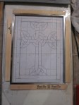 Now that Christmas is over, it’s time for a little winter project. It’s been a long time since I did a window panel using lead came so that sounded like a project to me. Looking around our house for a window that doesn’t already have a piece in it, I decided the family room needed something to compliment my collection of the wooden fish from Newfoundland (Sarah), the leather coasters from Chile (Marcela & Ximena) and the ironwood cactus from Arizona (Maneau). Since there is an international theme going on there, I thought a Celtic Cross might be nice… I’ll dream of Ireland as I work on this.