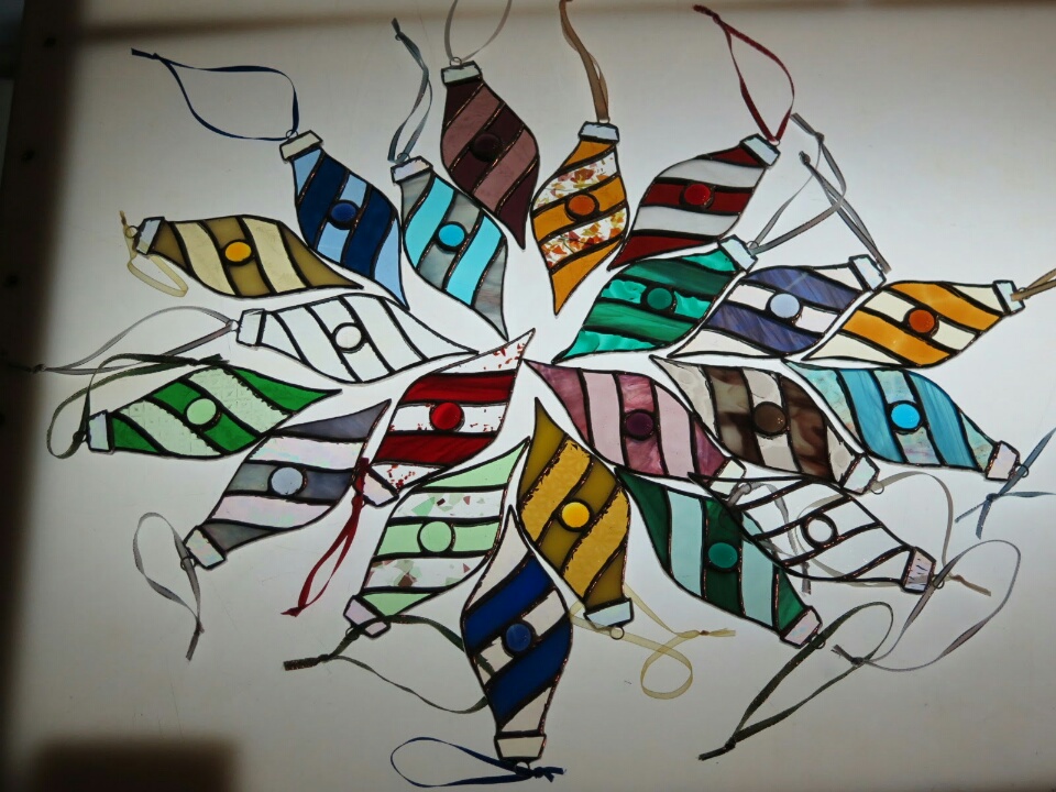 Then for 2019, a Christmas Diamond featuring a central square bevel set in irridized glass. After four Christmases, folks were getting to know us at CraftologySJ and we had a ball. The ornaments have sold out each year making them collectable as a complete set. I know of a few folks that have all four of the above.