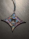 We stayed with Craftology for two more years. That meant two more Christmas ornaments were produced in small numbers as before of forty or fifty. For 2018, an irridized 3.5″ star. The ten pieces in the pattern form an inner star which echos the overall shape.