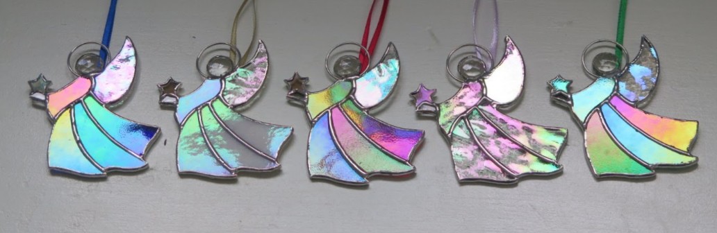 2023 was the final year for Nellyglass Studio. I wanted to make something spiritual to finish off the ornament collection. I chose the Christmas Angel; “Guardian of the Sacred Light”. I used all irridized glass in five colors with a clear faceted jewel as her head. I love how she is carrying the little star… it lifts my spirits and gives me hope.