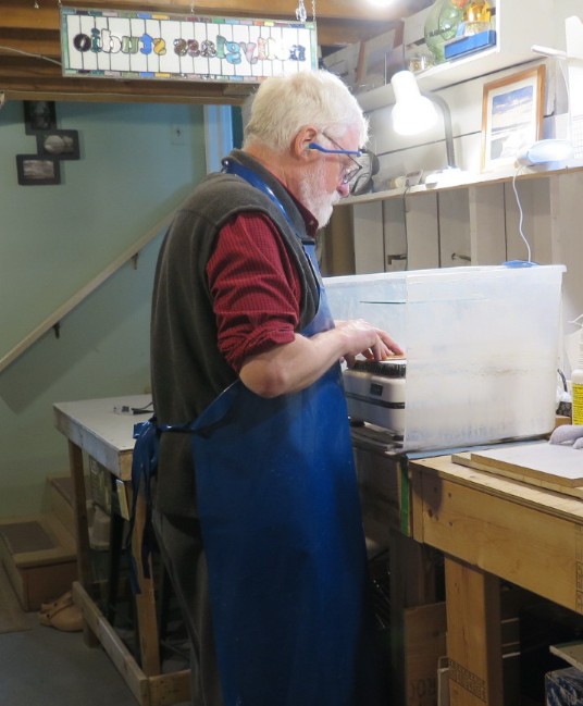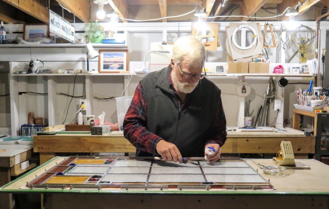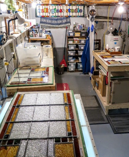 A sincere ‘Thank You’ to Carrie for the opportunity to advance my learning in the areas of handling large panels, cutting glass and lead, building in extra strength and calculating a cost of materials. Even though my business is closed now, that is knowledge I can take forward in my own artistic pursuits and share with interested others.