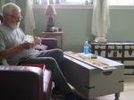 The work was obsessive. I tweaked the pattern several times seeking balance. Gradually, it became a delightful cross between Art Deco and Abstract. Glass selection was limited to three opalescent shades of red, orange and yellow (the hot end of the spectrum). Although the red and orange glass are less differentiated under light, all have their own unique textural composition which creates interest and carries the eye around the piece.
