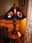 This project changed several times during its completion as I found images that were better suited for the design. Originally I was going for a representative totem for mammal, bird, reptile, fish, amphibian and insect. That gave the design six panels but also made the shade too flat so I took one out… the moth, and made it into a moon catcher for Ryan – he is the Moth, awake all night, asleep all day, quiet, gentle, vulnerable and ellusive – like the Moth.