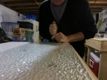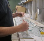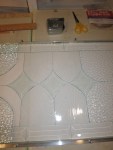 Pattern tracing, glass cutting and a start on the gringing took 4 hrs (I was up and at it at 4:30 am – couldn’t help it… this is what it’s like when a new project is on the table. Grinding continued over the next couple of days (4 more hrs) until all 18 pieces were fitting tightly.