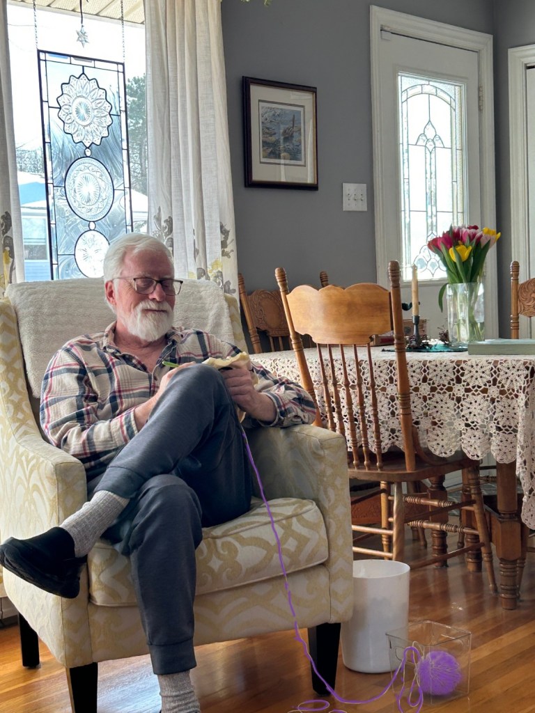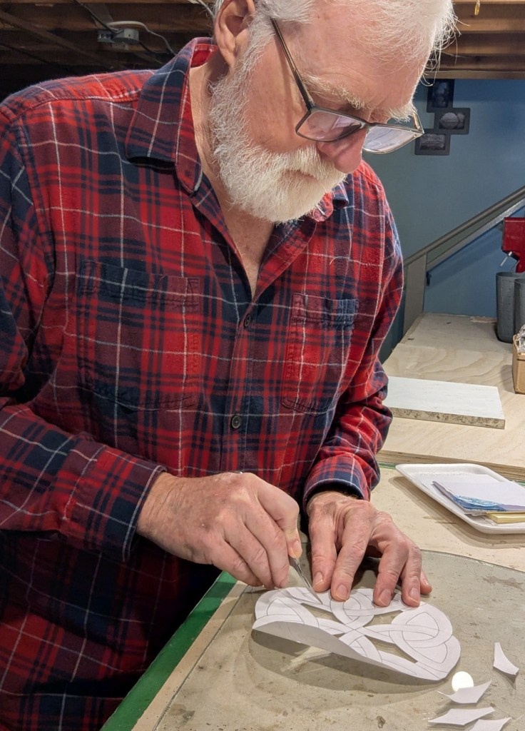Through January and into February, I enjoyed the intense eye and finger work. It reminded me of doing stained glass in some ways… the pattern making, the color selection, the tedium of repeditive tasks. Physically not as demanding on the neck and shoulders but more strain on the eyes after a few hours of hooking up close. Also, I don’t have proper back support figured out yet although my comfy chair studio is a nice change from the cold basement of my glassing days.