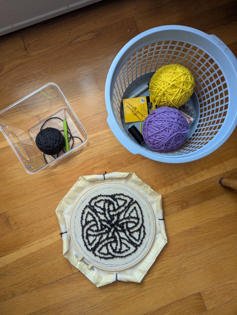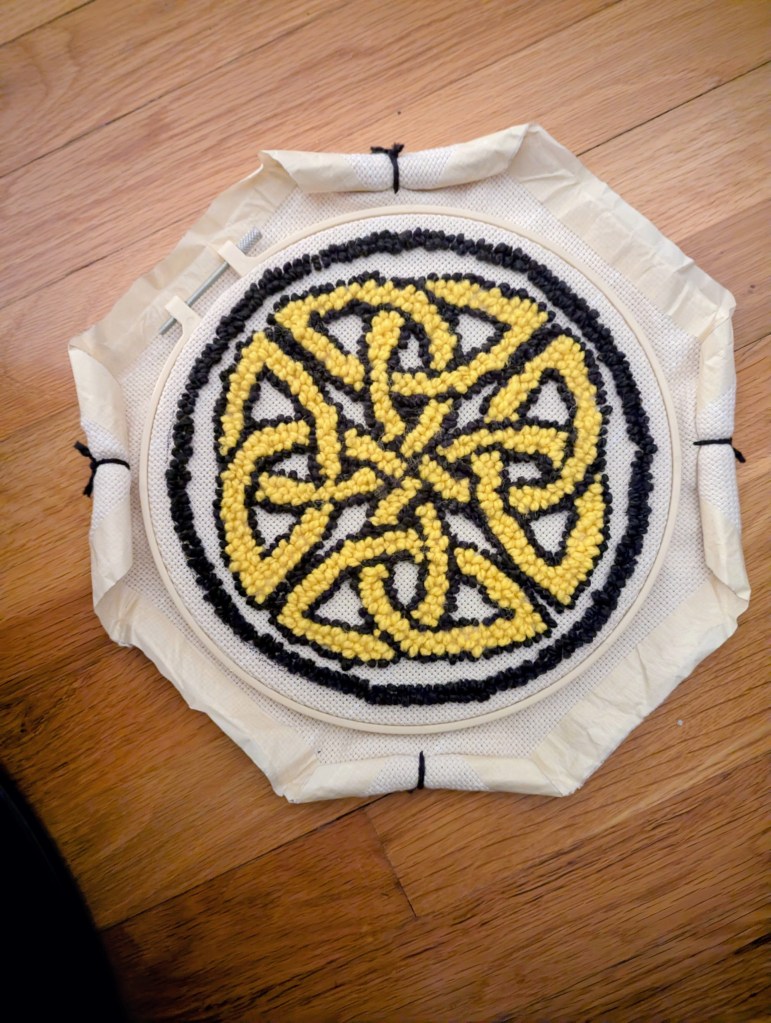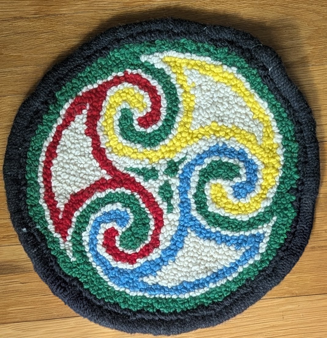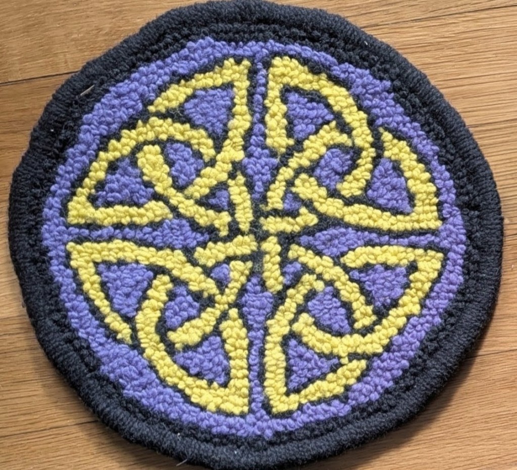 Very experimental and quite unconventional as rugs go (requiring multi-piece assembly), but I enjoyed the learning from start to finish. Thank you for reading. This is my Celtic Knot Rug.