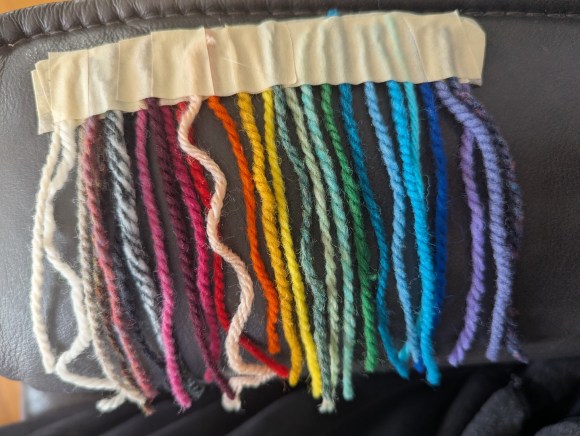 So, that meant a quick trip to the Dollar Store where I found some of the colors I thought would work… and so the yarn stash grows.