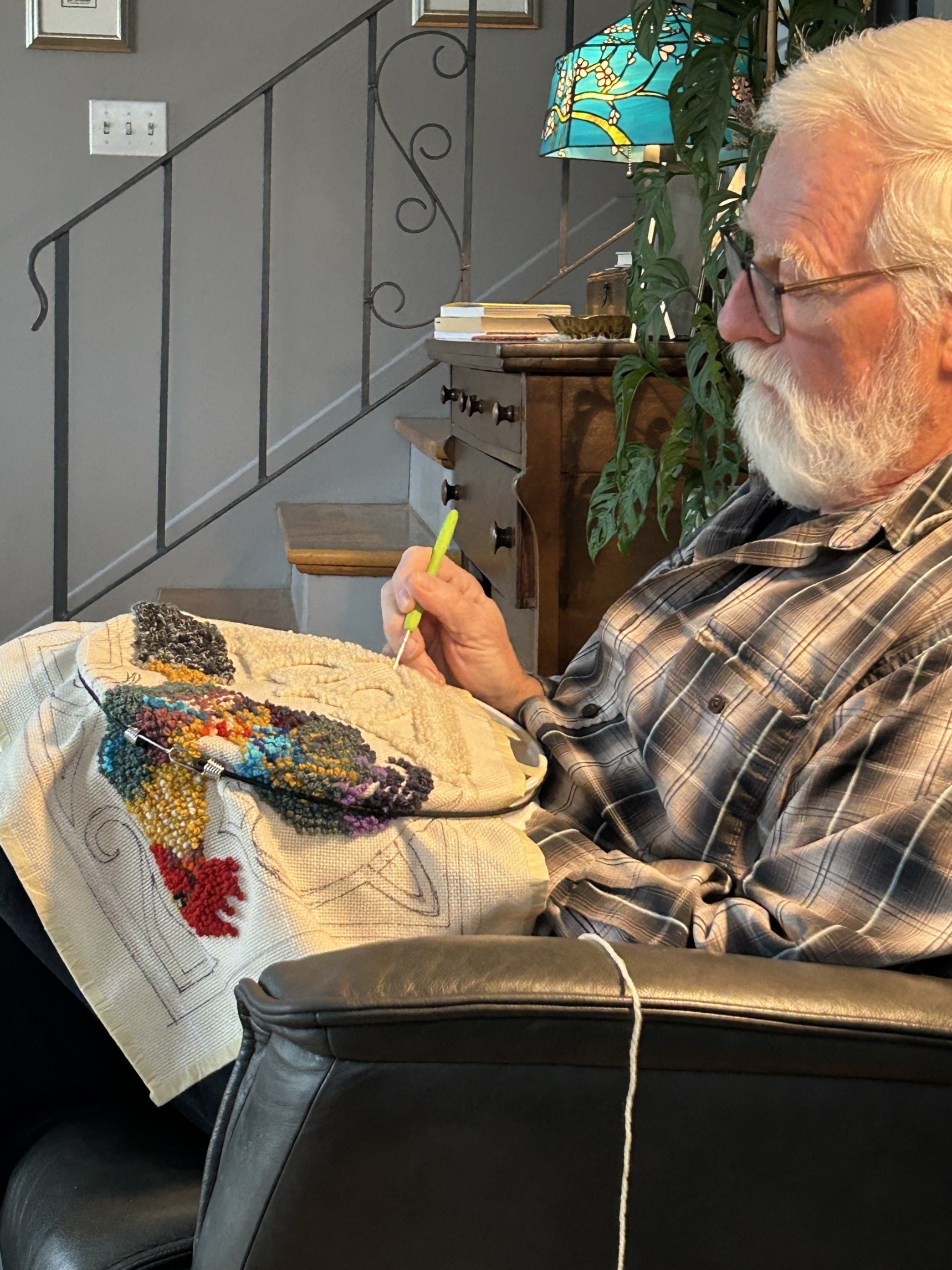 I was still missing a couple of color shades to complete my pallet. Michael’s did not have exactly what I wanted so I stopped there. It was time to start hooking with the pallet as it is.