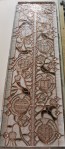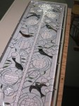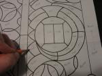 The panels are Art Nouveau in genre and depict sunflowers and birds. All six panels are identical in the original so I decided to make just one panel for my living room and down size it to four feet. There aren’t many close ups on the internet so I essentially had to draw the pattern from scratch…532 pieces. This was really fun as I love the creativity of designing and drawing.