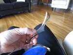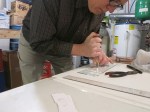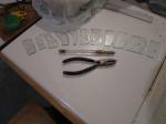 Once the clear background was ground to fit, next came the Horns. The glass used was a clear hammered. This was a great exercise in cutting curves and grinding to a fine point. I worked away at this phase the weekend of March 22 in between spending time with Ryan and Sarah who were both home together – wonder family time… lots of photos.