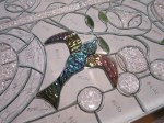 As mid April turns into late April, I am into the washing and foiling phase. Doing this in small sections and keeping the pieces in Ziploc bags once foiled. Will have to do the entire panel this way and then reassemble later. This is good so that if I have to take a break during the project, no problem. The foiled pieces will be zip-locked and protected from the air. Might need a break before this is finished since my Dad is not well these days. We travel to see him as much as possible. He is going to spend some time at his home with 24/7 care after being in the hospital for nearly 3 weeks.