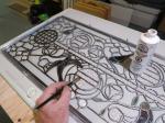 Finally finished the panel the last weekend of May. Soldering took several days on and off but I ran the final soldering marathon on Sunday morning (June 1) and then washed, patinaed and polished in the afternoon just before Happy Hour on the deck. Such a wonderful feeling of accomplishment. Below is the entire photo journey from start to finish. I estimate 80 hours (maybe more).