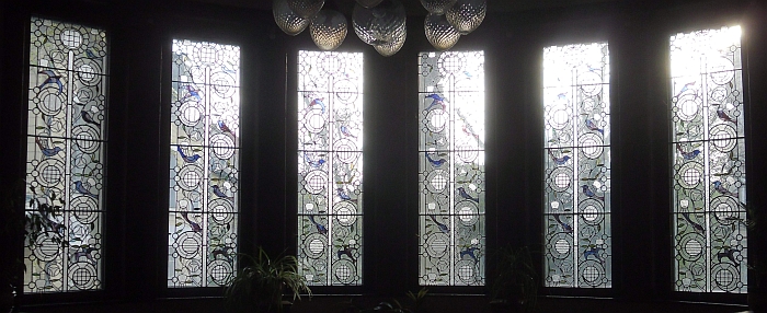 February 2014: I found a panel on the internet that I simply had to make. The original is a series of six large (six foot) windows in the Schiffer Villa in Budapest, Hungary which was built in the early 1900s.Schiffer Villa Windows