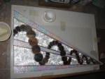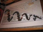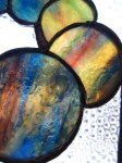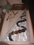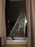 A great fun and satisfying project. My second original design which bubbled up in my head over many months of dreaming of stained glass and what I might like to make. Originally planned as garden art to hang in the deck window arch by the lattice. It ended up inside because the wonderful irridescent glass looked so good at night with lights turned on. Gave to Marlene as a retirement gift because she always appreciated it and said so. Enjoy Marlene! 🙂
