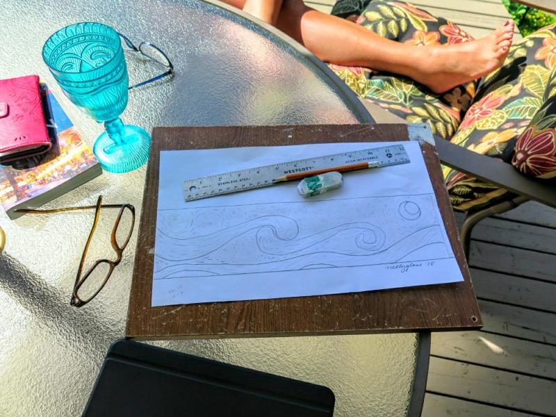 Our design was inspired by Vincent Van Gogh’s ‘The Starry Night’, with some artistic license to make it work as a long bench seat. The concept was drawn on the back deck on a hot July afternoon 😎… as we reminisced about Arles in the south of France… Van Gogh’s old stomping grounds. It was hot there too!