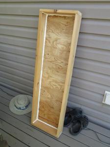 So, for the front garden, we decided to make a new concrete seat with mosaic glass inlay. It sounded like a great summer project that we could enjoy together. I built a mold out of leftover shed materials and sized it to 44″x12″…. same as the original.