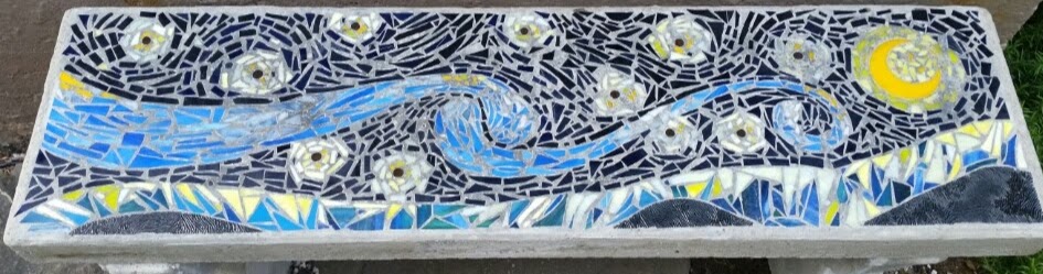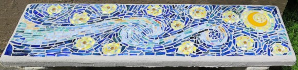 For comparison, here is Van Gogh’s “The Starry Night” with the two Nellyglass benches. Which one do you prefer?