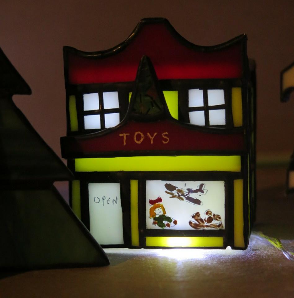 This was my second official commission but the first one completed and delivered. Our good friend from Fredericton, Diane Carson, has a few pieces to a glass miniature village that she displays at Christmas time. The buildings are very small (the smallest being 7cm x 4cm). She wanted to expand her village so came to me with the idea and brought her existing pieces to show me. Challenge accepted!